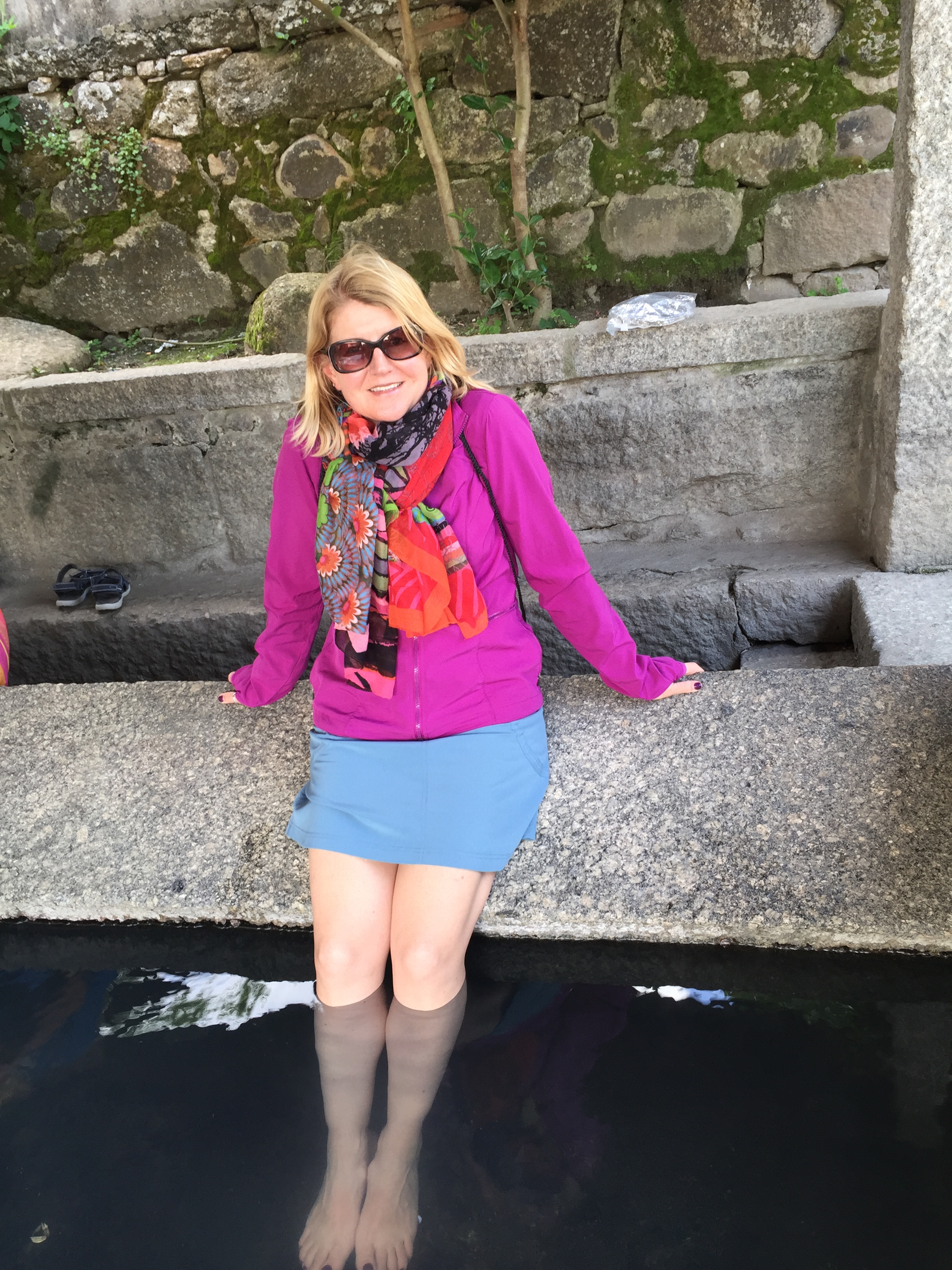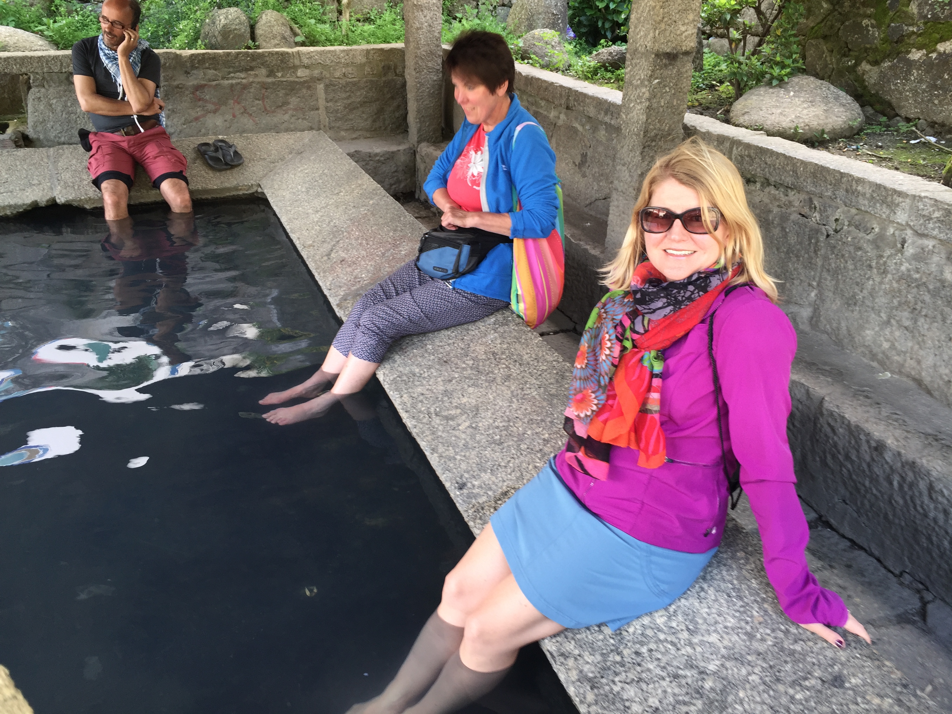Later I strolled along the river and found the hot springs that Caldas de Reis is known for. The natural hot springs water is said to have healing properties. As I put my legs in, it felt so incredible after walking all day. I am glad I didn’t have blisters because that probably would have stung. Maybe that’s why a few peregrinos were hovering around the pools but not getting in.